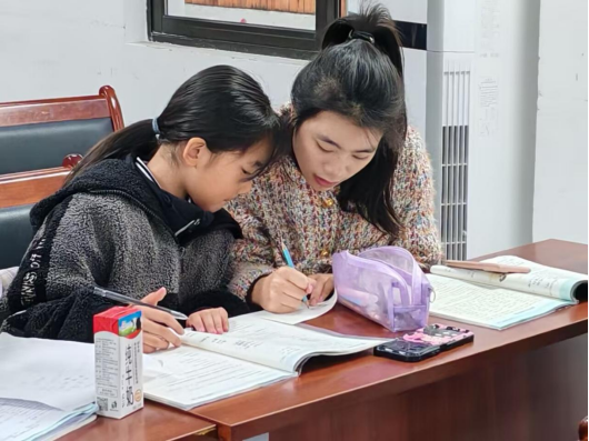 图 3党员同志教小朋友做题的画面