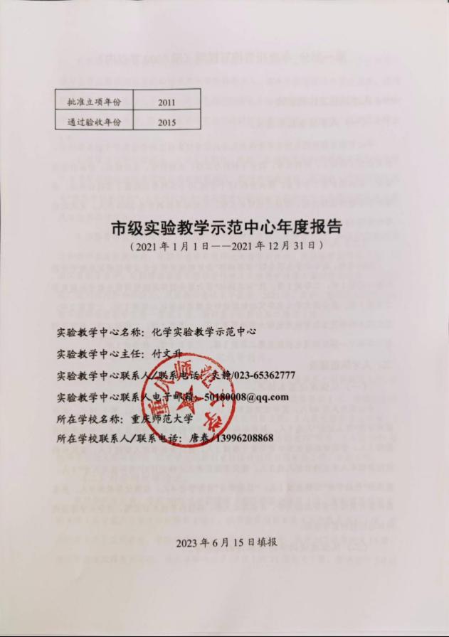 在科学研究方面,学院2021年共获国家自然科学基金项目2项、市科技局项目立项4项(其中重庆市英才计划项目2项),获市教委项目6项(其中重大项目1项、重点项目1项)立项资助。学院教师公开发表科研论文62篇,其中SCI收录论文55篇,高水平论文取得重大突破,共发表影响因子10以上的T1级论文7篇、影响因子5.0以上的论文33篇。获专利授权15件。“精准纳米合成与催化应用”团队获2021年重庆市高校创新研究群体立项建设;活性物质生物技术教育部工程研究中心成为“中国生产力促进中心协会特医食品及生物活性肽工作委员会”的常务委员单位和“特医食品及生物活性肽产业技术创新战略联盟”的常务理事单位;举办学术交流讲座2人次,邀请2名专家学者来学院进行了学术交流,学院教师参加国际国内学术会议10余人次。中心教师在从事科学研究的过程中,将科学前沿的成果渗透到实验教学中来,教学水平显著提高,这也使得化学实验教学的整体水平上了一个新台阶。