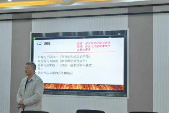 胡连哲老师的授课内容为《仪器分析》——紫外吸收光谱分析。他从分子吸收光谱、有机化合物的紫外吸收光谱、无机化合物的紫外及可见光吸收光谱进行介绍,并进行了课堂总结,得到老师们的一致赞赏。