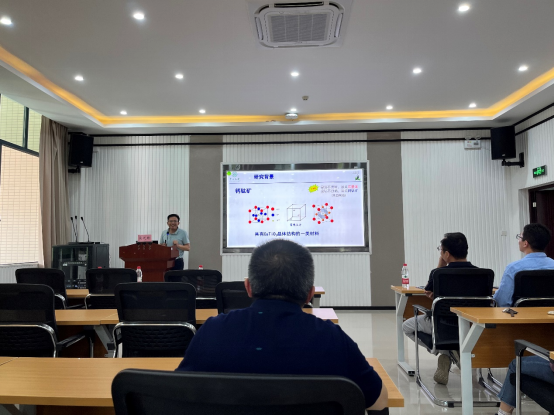 院长刘玺首先对匡代彬教授的科研经历及取得的科研成果进行了介绍。随后,匡代彬教授围绕与钙钛矿单晶材料相关的“钙钛矿单晶研究兴趣”、“钙钛矿单晶研究背景”、“钙钛矿单晶研究思路”、“钙钛矿单晶研究内容”、“钙钛矿单晶光电应用”、“钙钛矿单晶发光应用”六个部分展开讲座。匡代彬教授结合自身的科研经历给大家介绍了在实验过程中怎么制备厚度较薄且面积较大的钙钛矿单晶材料以及钙钛矿单晶材料在探测器、光电催化等方面的应用。匡代彬教授还详细分析了金属卤化物发光材料在固态照明、显示器件、闪烁体、X-射线成像和防伪等领域的应用前景。