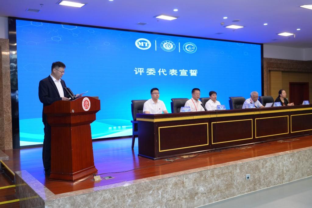 选手代表——来自太原师范学院的2024级化学研究生,代表全体参赛选手郑重宣誓,表达了以饱满的热情和良好的风貌投入比赛的决心。随后,评委代表上台宣誓,承诺将严格遵守比赛规则,坚持公正、公平、公开的原则,圆满完成评审工作。