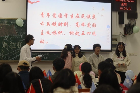 “我们是五月的花海,用青春拥抱时代……”同学们用高亢嘹亮的歌声合唱《光荣啊,中国共青团》为本次团日活动拉开序幕,铿锵音韵在教室回响,生动地诠释着青春的使命。