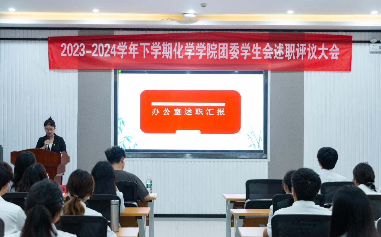 为提高学生会成员的责任感,促进学生会成员的交流与学习,6月16日晚上7点,化学学院团委学生会述职评议大会于求是楼202成功举办。参与本次会议的人员包括院学工办、分团委负责人刘冰老师、团工委学生副书记陈鑫两名嘉宾,团委学生会主席团成员、十三个部门负责人以及2022、2023级班级代表。