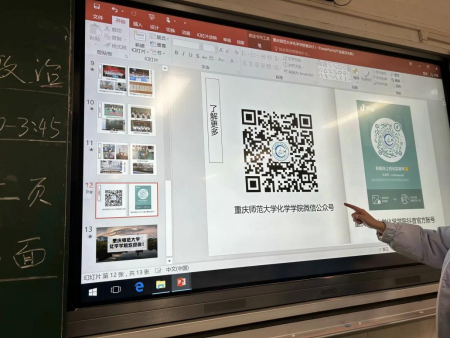 向婕正向同学们介绍化学学院的官方官方媒体,包括微信公众号等等