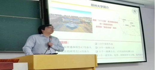 宣讲会上,郑州大学化学学院蓝宇院长作为主讲人,详细解读了化学学院的研究生教育概况,包括学院的历史沿革、师资力量、科研成果以及国际合作交流情况。特别强调了化学学院在化学、材料科学与工程等领域的特色与优势,以及学院在科研创新和人才培养方面的成就。