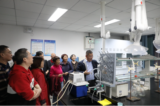 座谈会结束后,在院领导的陪同下,校友们参观了化学学院的实验室,刘玺副院长(主持工作)向校友们详细介绍了学院的发展历程及今年取得的成果。面对母校近年来教育教学取得的成绩,校友们不时点头称赞,对学院的发展变化感到由衷地喜悦,也对学院未来的发展充满了期待。校友们也表示将在未来的人生征途中不忘初心、奋力前行,继续支持母校事业发展,共创母校美好未来!