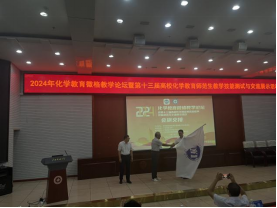 闭幕式上,我院院长王燚教授通过竞聘,让M88成功获得2025年化学教育微格教学论坛暨第十四届高校化学教育师范生教学技能测试与交流展示活动的承办权。我院拟于明年9月负责下一届活动的承办,王燚院长从孟宪凯理事长手中接过会旗并致辞。我院将继续秉承“以赛促学、以赛促教”的理念,不断加强学生实践能力的培养,为推动化学教育发展贡献更多力量。