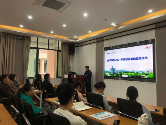 演练开始前,保卫处消防科为化学学院全体教职员工、全体研究生以及本科生代表做了关于实验室消防安全重要性的讲解以及消防安全演练的情况,强调消防安全尤其是实验室消防安全的重要性,用丰富的案例为化学学院师生敲响警钟